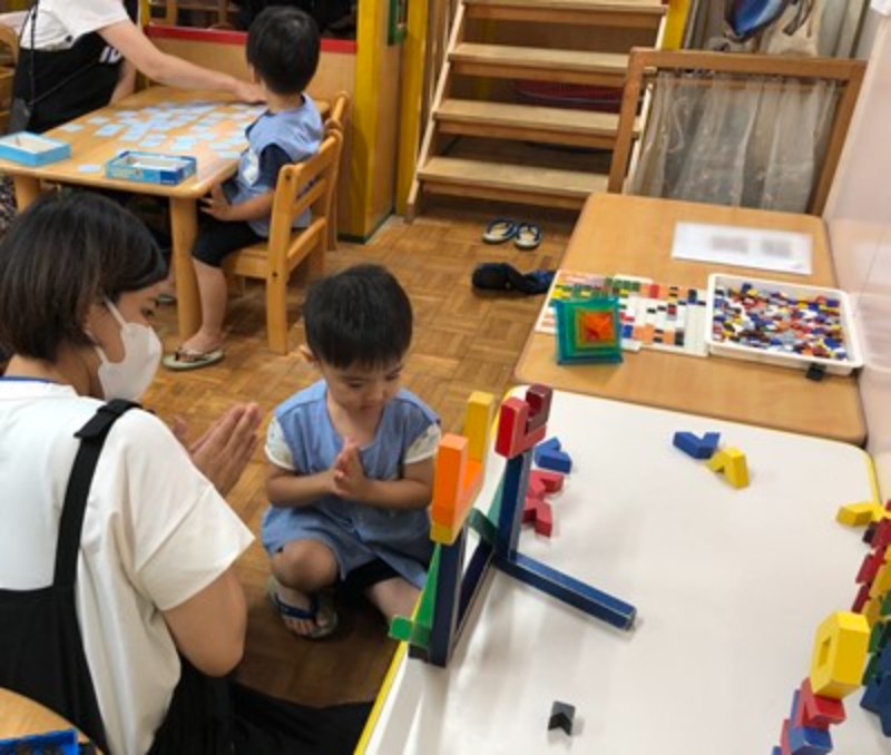 惜しくも外は、雨模様。外での遊びは見送りましたが、いつも楽しんでいる室内での遊びを親子でたっぷりハートと、満喫していただきました。