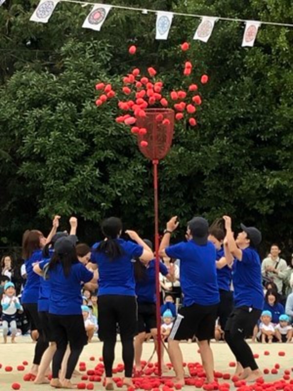 学年別の「玉入れ」は、いい勝負でしたね。子どもたちに感化されて、職員も(*^_^*)