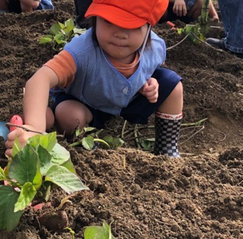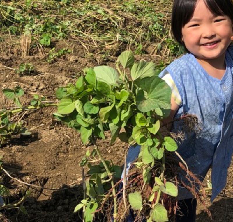 春に植えた芋が、秋の陽ざしの中で見事に育ち、いよいよ収穫の日(*^_^*)