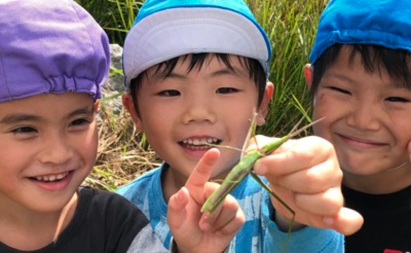 頂上では、バッタやカマキリにも出会えて、更に喜びが増した子も♡