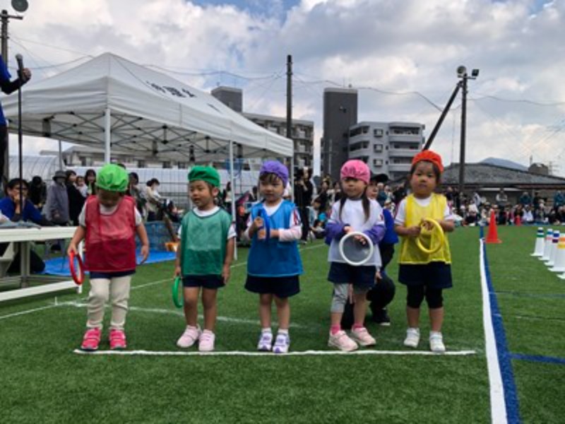 雨雲を見上げながら、「晴れてほしい」「雨が降りませんように」と何度も願った運動会。天気の心配を吹き飛ばすように、園庭の人工芝は雨に濡れてキラキラと輝き、まるでステージのように子どもたちを迎えてくれました。