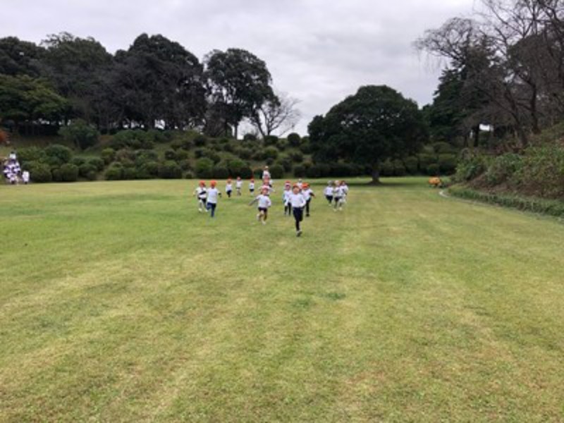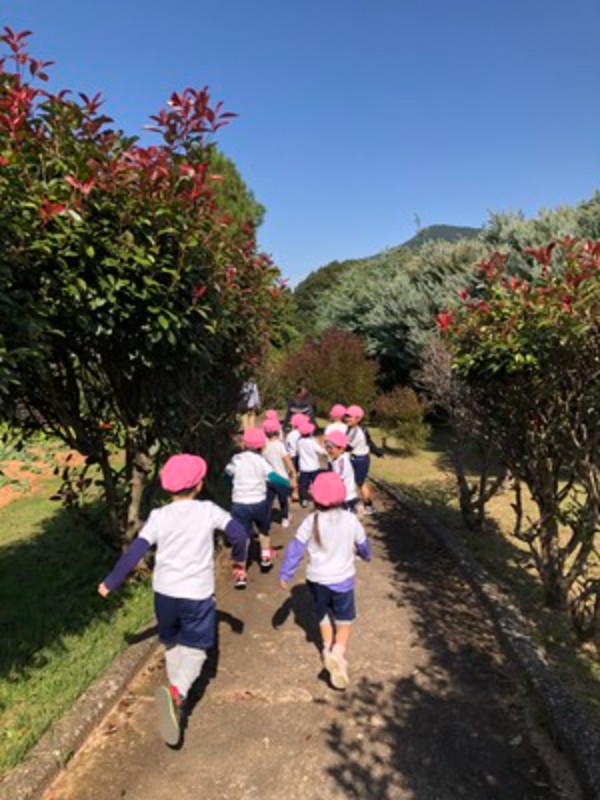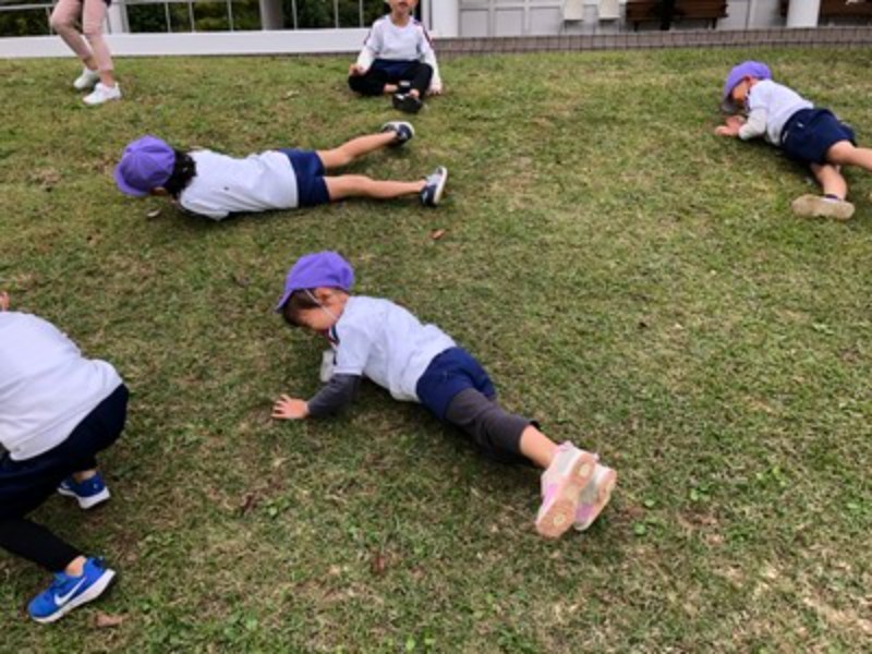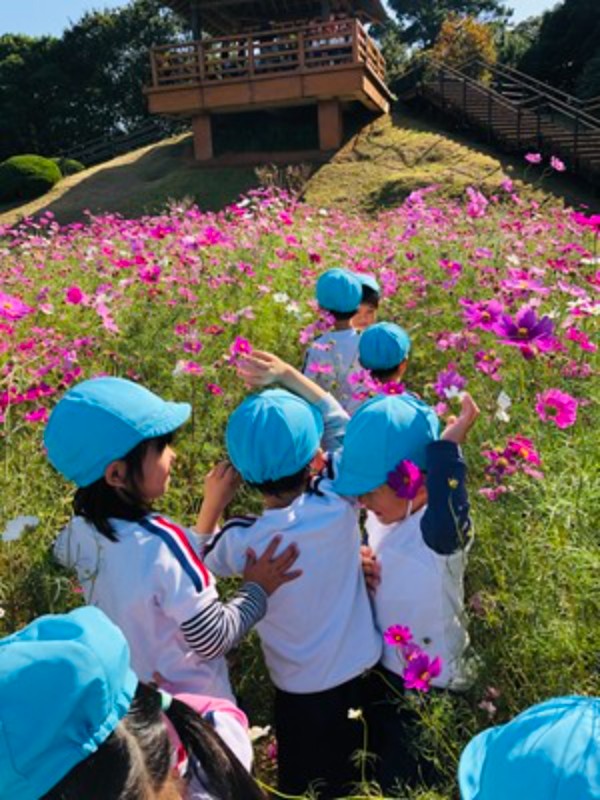 その後は、秋風に揺れるコスモスのトンネルをくぐり、足元に転がるどんぐりを拾い集め、斜面を笑い声とともにコロコロ転がって…。自然の中で過ごすひとときは、まるで季節そのものが遊び場になったようでした。