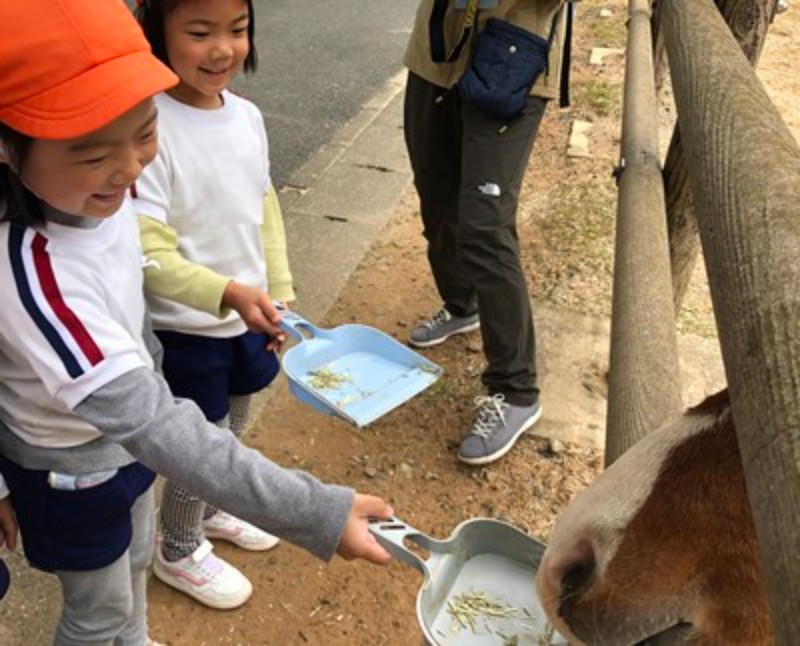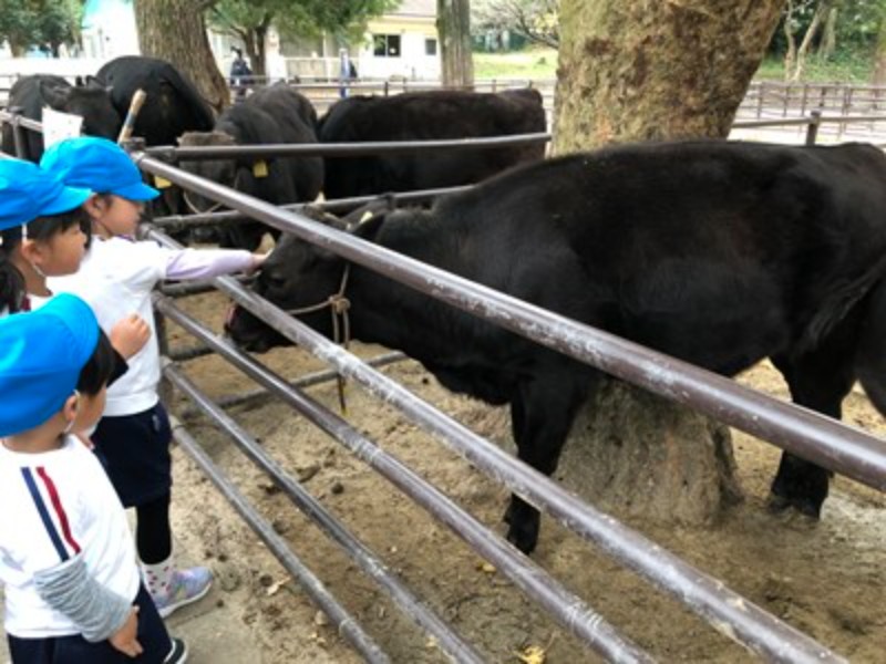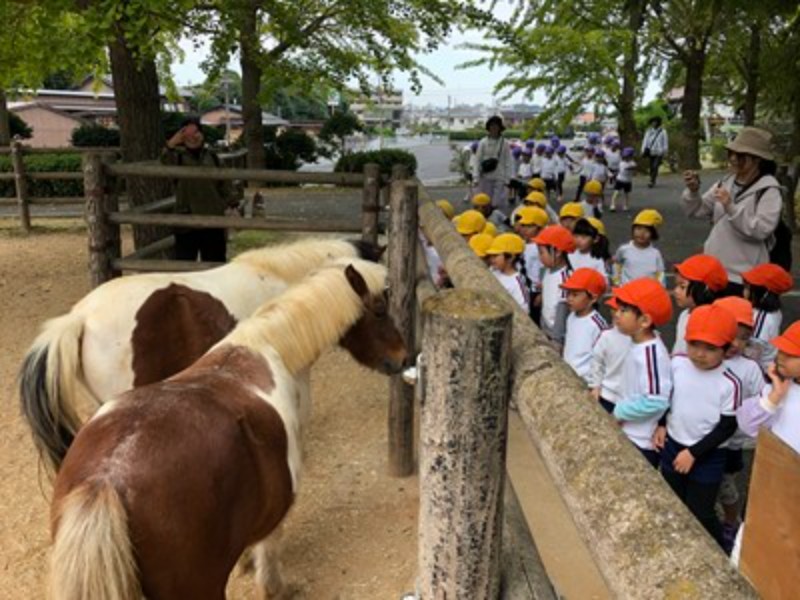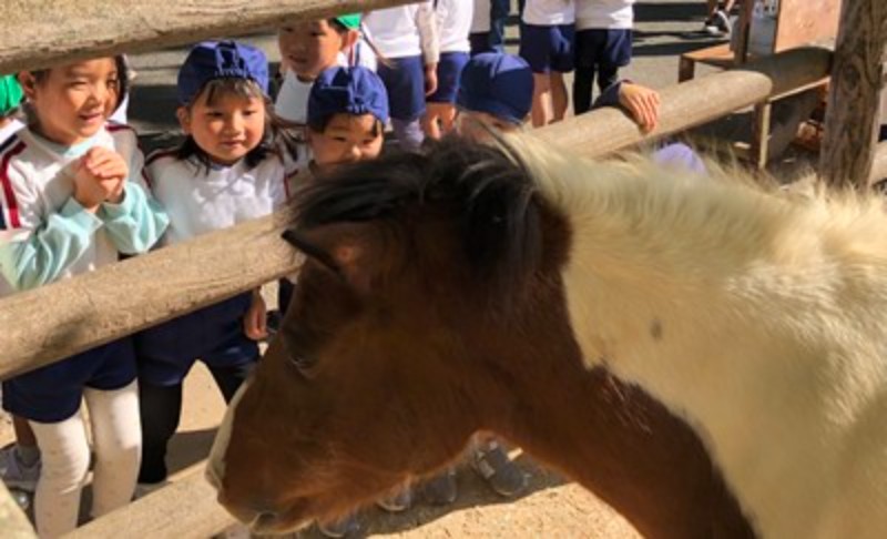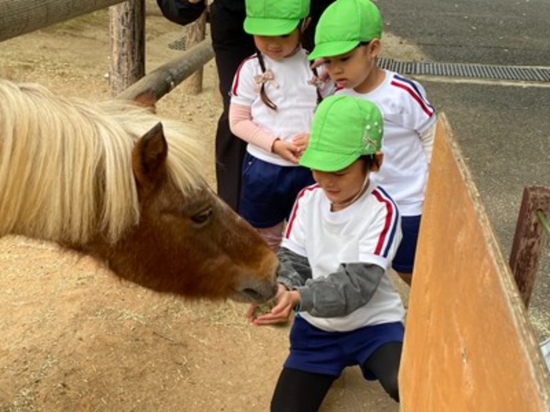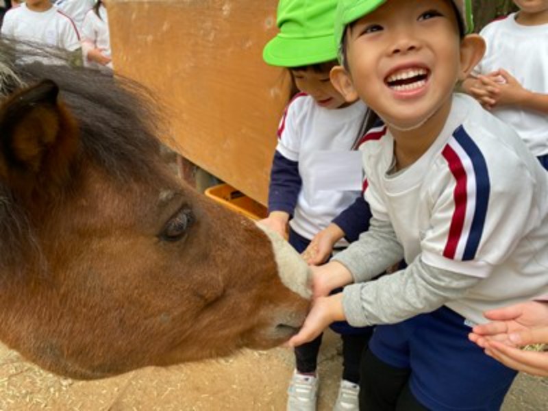 クラスごとに園バスへ乗り込み、農事センターへと向かった遠足の日。 目の前のヤギや馬、牛たちに、子ども達は少しドキドキしながらも、心が弾むようなワクワクの出会いを楽しみました。