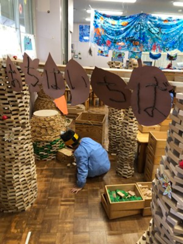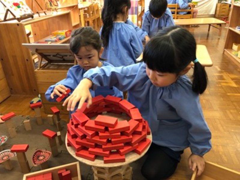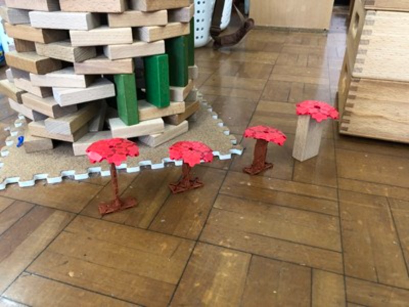 いろいろな部屋で子ども達の新しい遊びが少しずつ芽生えています。まるで秋が日に日に深まり、景色が豊かに彩られていくように、遊びの世界も広がりを見せています。
