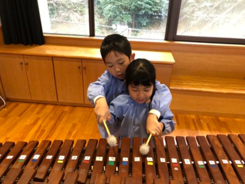 一人ひとりが奏でる音には、しんり幼稚園で積み重ねてきた遊びや感性がしっかりと息づいていて、その響きが心の奥まで届きました。仲間と息を合わせ、緊張しながらも精一杯表現しようとする姿には、子ども達の内側からあふれる力強さと優しさが宿っていて、思わず目頭が熱くなりました。そして音楽会の後、年長児は他学年の子ども達に、楽器の持ち方や音の出し方を丁寧に教えてくれました。小さな子たちに寄り添いながら、優しく言葉をかける姿は、まるで頼もしいお兄さん・お姉さんそのもの。教える側になった年長児の誇らしげな表情を見た瞬間、またひとつ大きく成長した姿に胸が熱くなりました。音楽を通して生まれた学年を越えたつながりと、子ども達の心の成長。その温かさに包まれた時間は、きっと子ども達の未来へ続く大切な一歩になるのだと感じました。