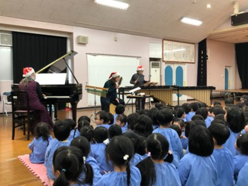 マリンバとピアノの音色が響き合うコンサートは、まるで音の魔法に包まれたようなひとときでした。年長さんが音楽会で演奏した思い出の曲や、心をそっと揺らすクラシックの名曲が次々と流れ、会場には自然と歌声や手拍子が広がっていきました。