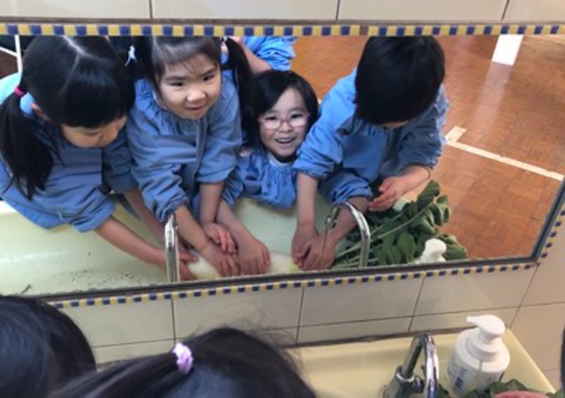 小さな手でまいた種が、やがて大きな「大根」へと育ちました。土の中から顔をのぞかせた白い姿に、みんなの目がキラリっ。「よいしょ、よいしょ」と力を合わせて引き抜くと、土の香りと一緒に、うれしさがこみ上げてきます。